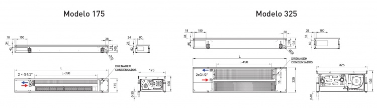 | Largura (mm) | 175 | 325 | 175 | 325 | 175 | 325 | 175 | 325 | 175 | 325 |