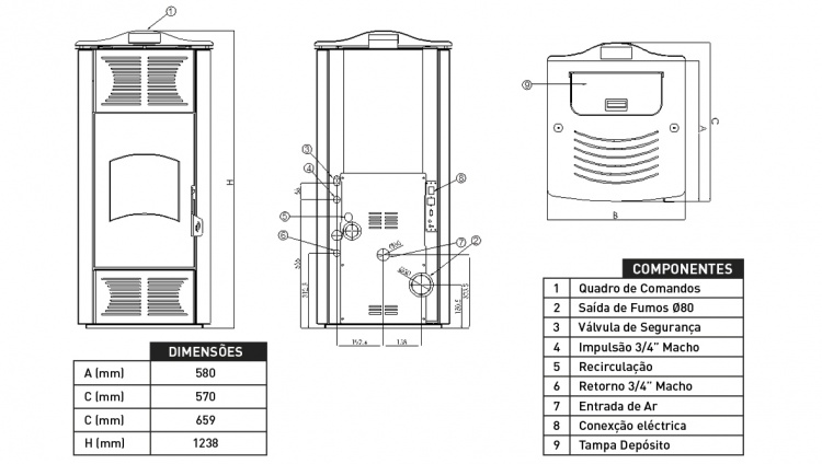 > Diâmetro da chaminé (mm): 80;