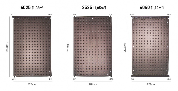 • Perda de carga: 0,003 bar (com caudal de 200 l/h/m2);