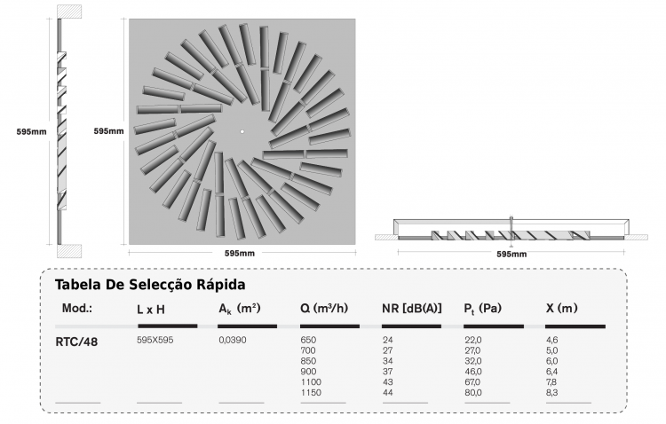 O difusor rotacional caracteriza-se pelo seu movimento rotacional e turbulento capaz de climatizar a um ritmo acelerado, sendo por isso particularmente indicado para espaços com um pé direito superior a 2,60 metros, tais como centros comerciais ou escritórios.