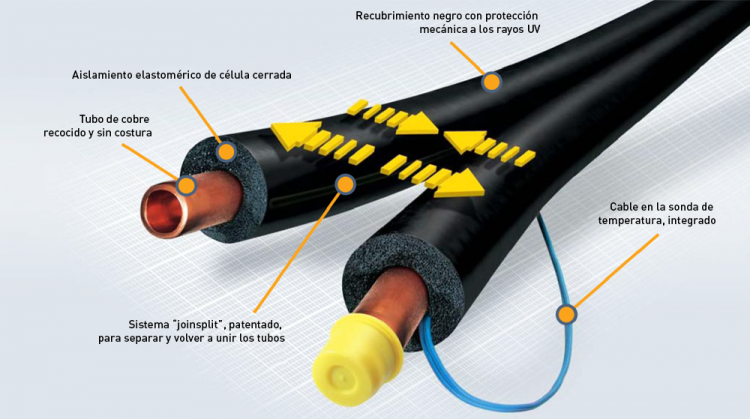 Tuberías previamente aisladas para la conexión de los diversos componentes de los sistemas de energía solar térmica.